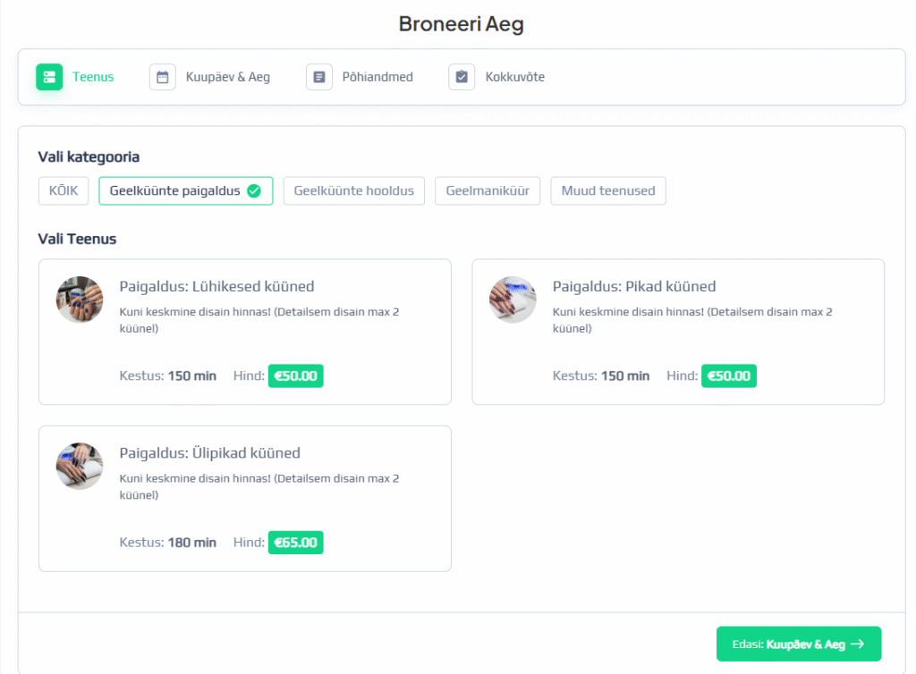 💡 Kinnita broneeringud ja saada vajadusel meeldetuletus enne teenust.
