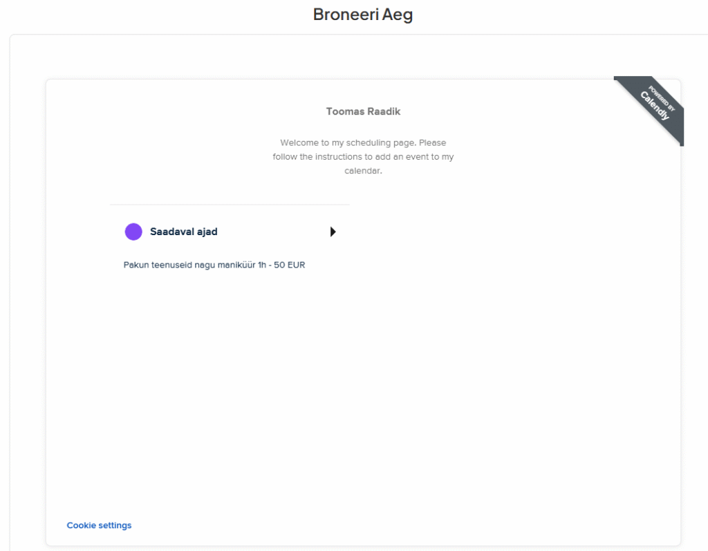 Calendly sobib hästi neile teenusepakkujatele, kes soovivad kiiresti broneerimissüsteemi käivitada ilma BeautyBooki sisese halduse ootamiseta.